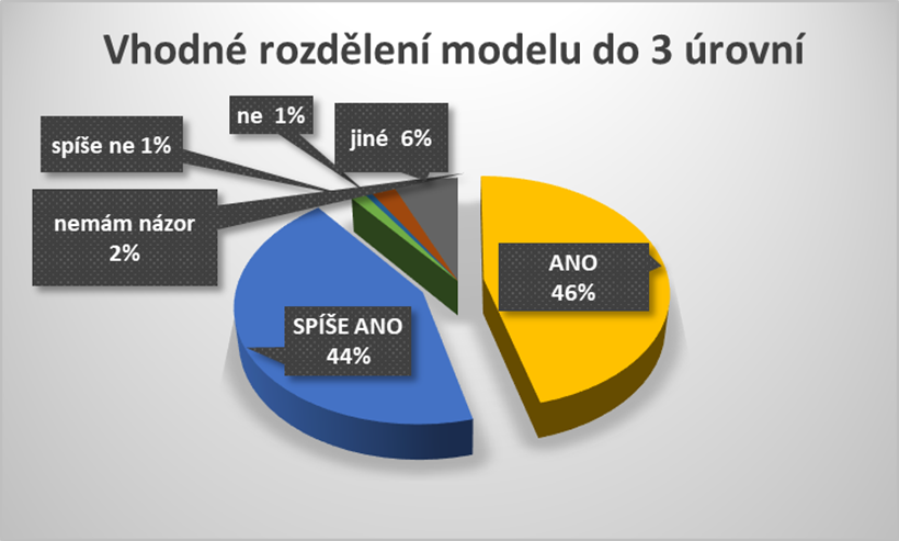 - 90 % respondentů považuje navržený model za vhodný a rozdělení do tří úrovní za smysluplné.